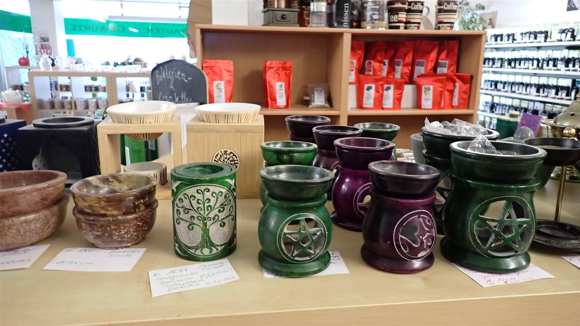 Räucherwerk wie Weihrauch, Myrrhe, Copal, Tonkabohnen - bishin zum heiligen Holz Palo Santo! Räucherkohle und Zubehör runden das Angebot ab. Ein Einkaufserlebnis, das Sie mit allen Sinnen genießen können.