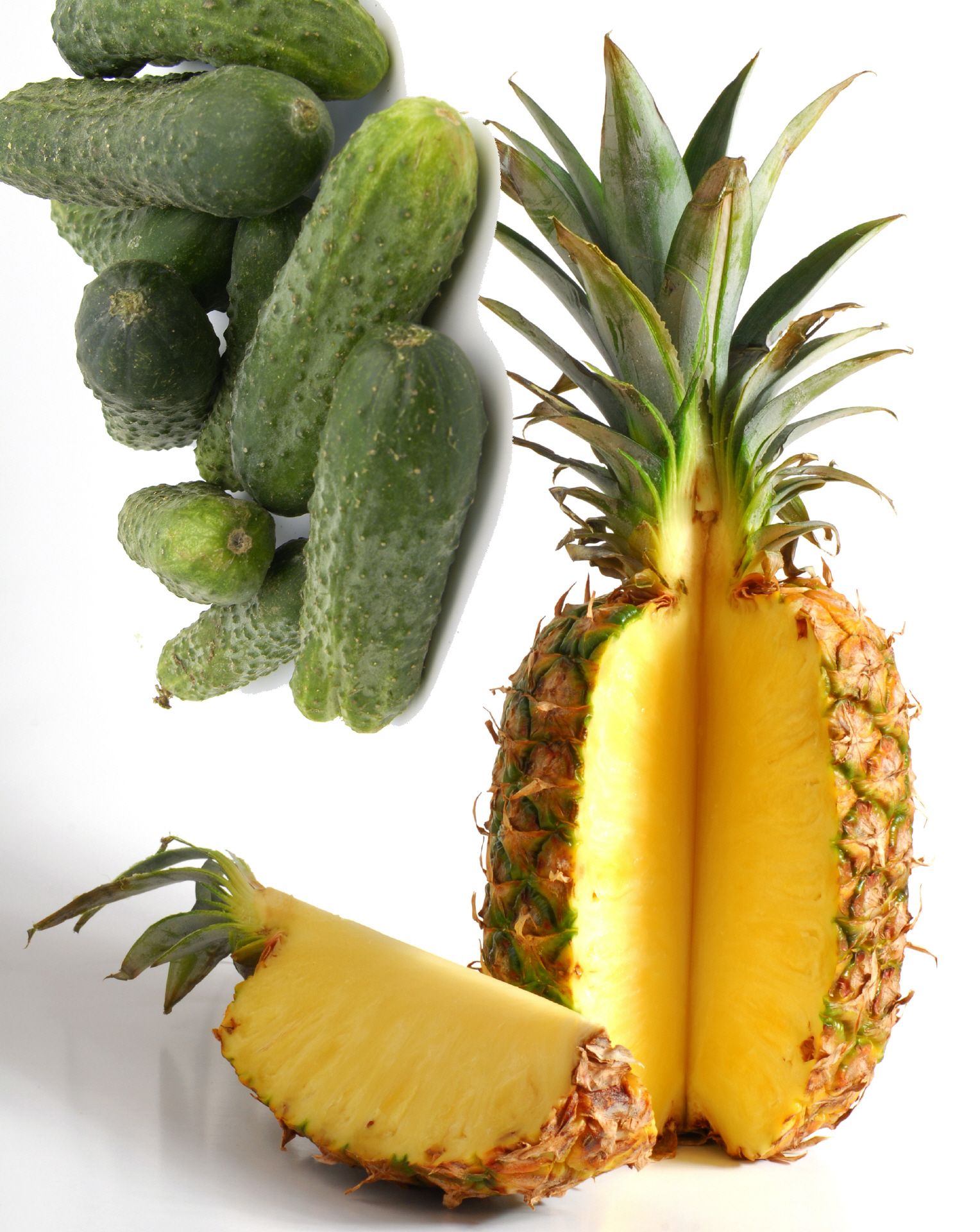 Zutaten: Ananaswürfel (Ananas, Zucker), Gurkenscheiben, Ananasflocken, Pfefferminze, Aroma, ganze Pfefferminzblätter, gefr.-getr. Zitronenschalen.