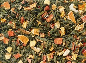 Zutaten: grüner Tee (60%), Kürbiswürfel, Orangenschalen, Karottenflocken, natürliches Aroma