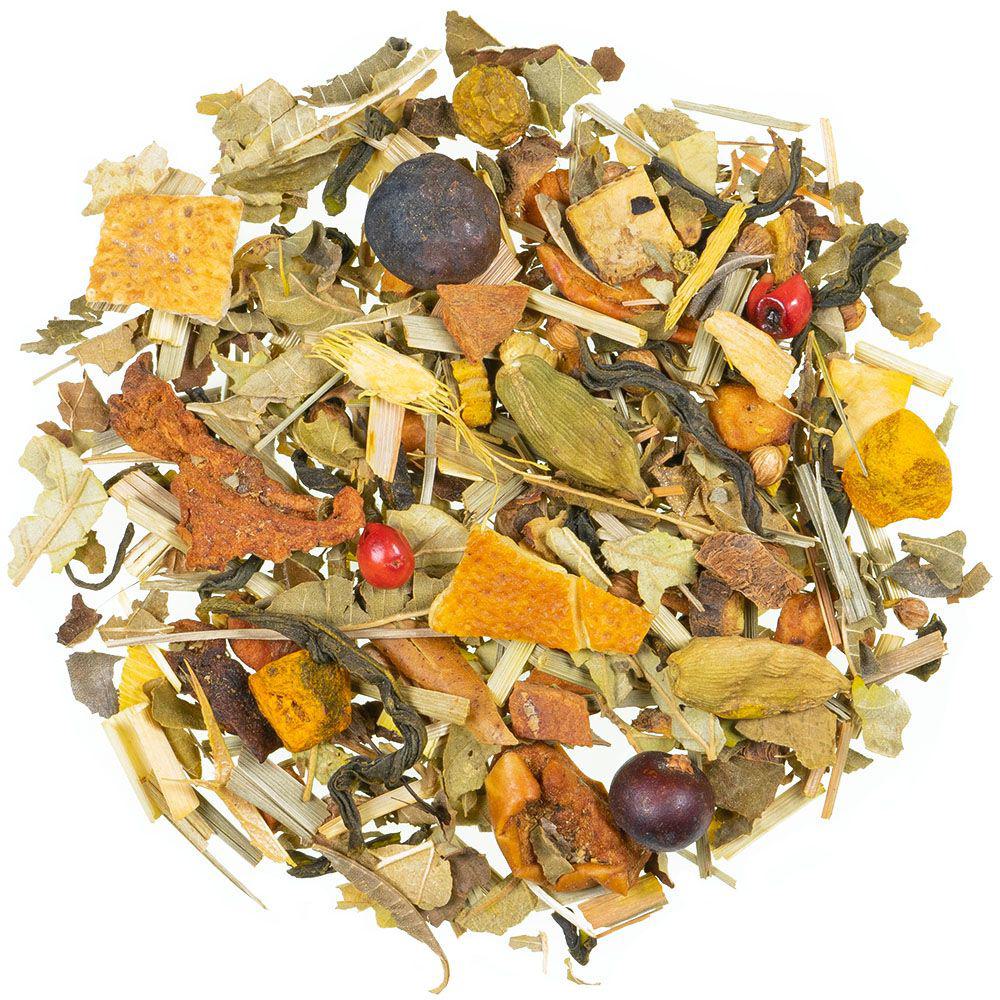 Zutaten: Kurkumascheiben (20%), Ingwerstücke, Kakaoschale, Anissamen, Fenchel, Brombeerblätter, natürliches Aroma, Vanillestücke. Probieren Sie diese mild-würzige Kreation doch gerne mal mit einem...
