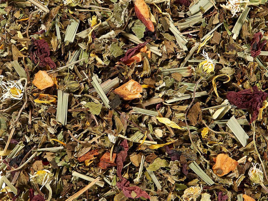 Einfach mal chillen und die Füße hochlegen! Dieser Kräutertee mit fruchtigem Blutorangen-Geschmack und der Trendzutat Hanfblätter ist der perfekte Tee dafür. Zutaten: Tulsikraut, Rooibos, Melissenb...