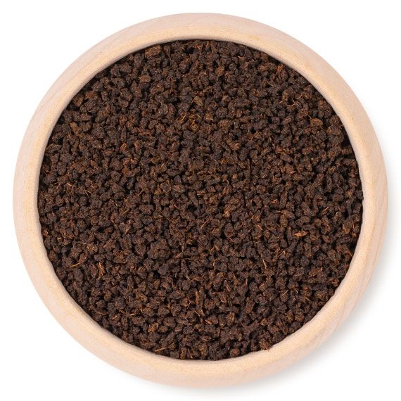 Ein typisches braunes CTC - Korn. Dunkelbraune Tasse, kräftig, würzig und nachhaltig.